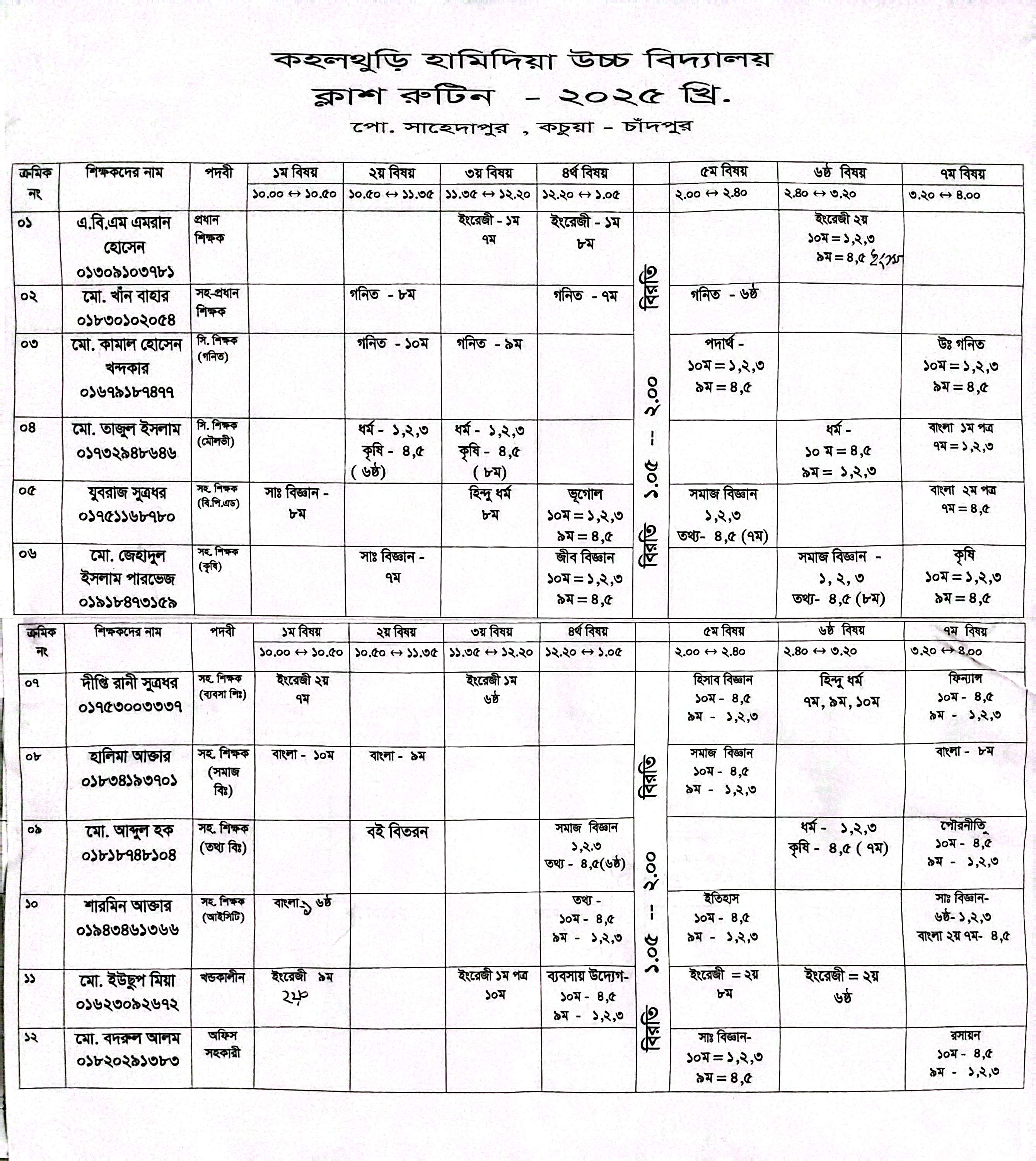 | 2 | ষষ্ঠ শ্রেণি থেকে দশম শ্রেণী পর্যন্ত ক্লাস রুটিন ২০২৫ | General |