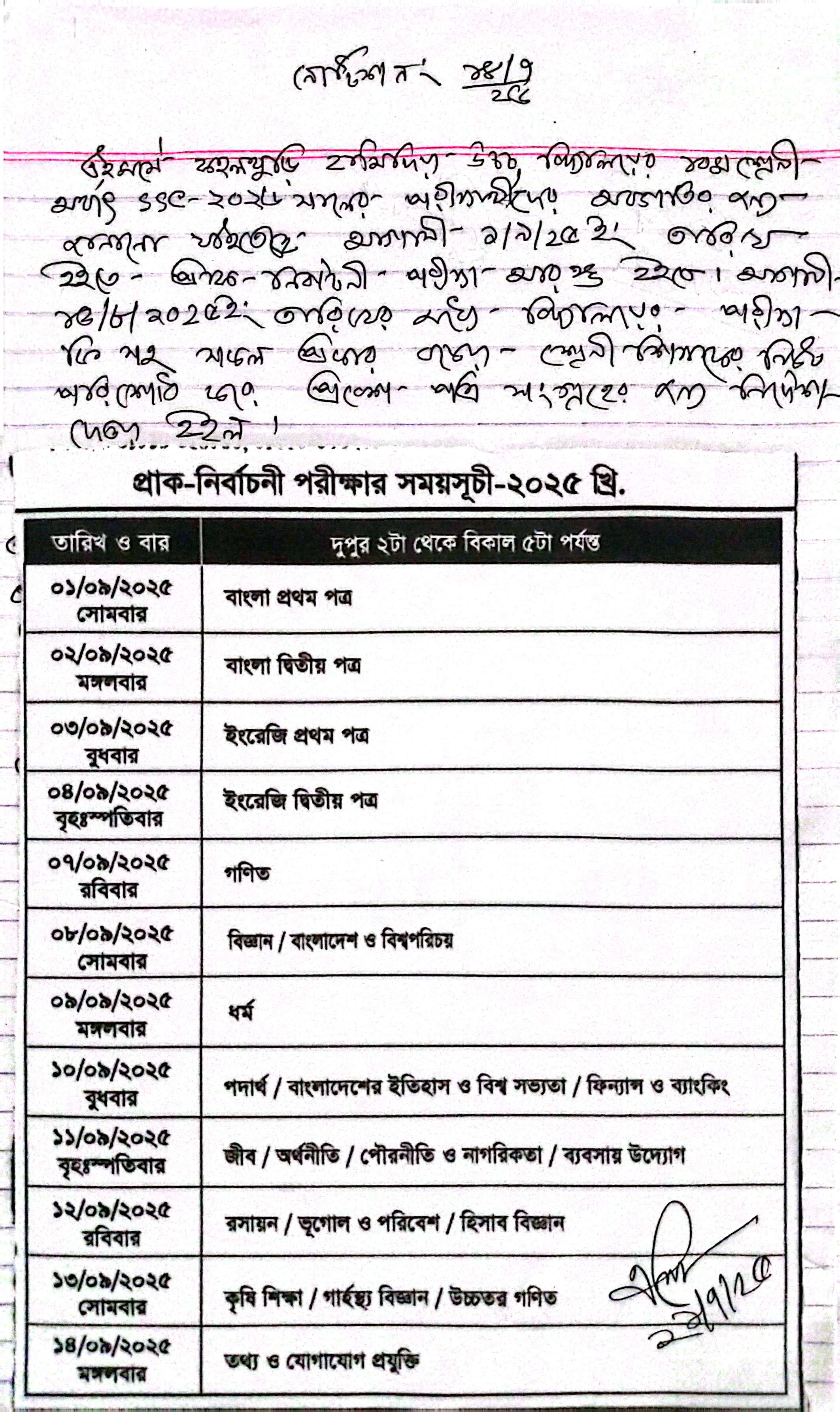 | 1 | প্রাক নির্বাচনী পরীক্ষার সময়সূচি ২০২৫ | General |