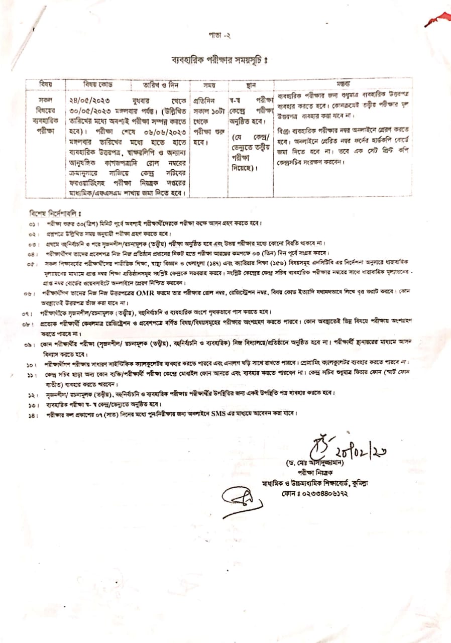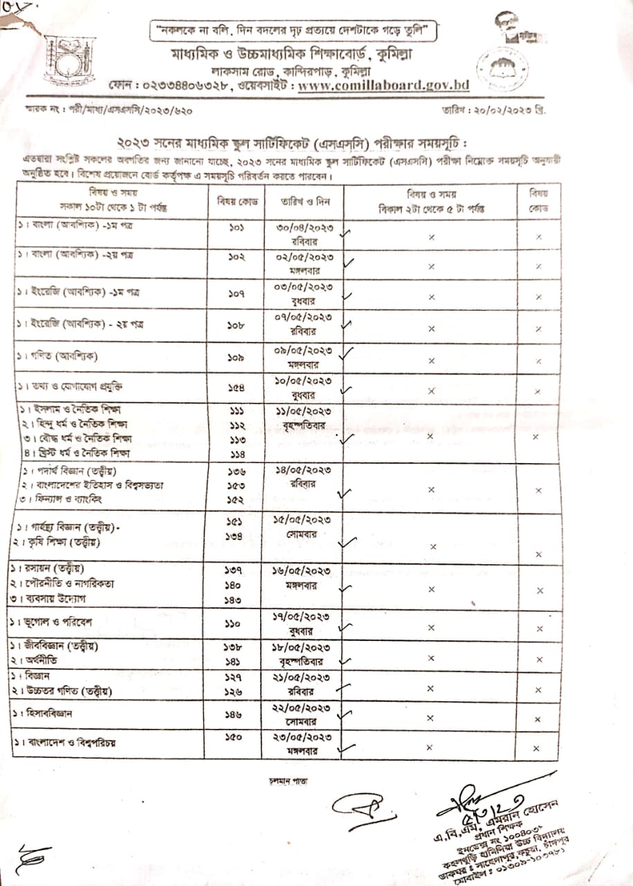 ২০২৩ সনের মাধ্যমিক স্কুল সার্টিফিকেট (এসএসসি) পরীক্ষার সময়সূচি