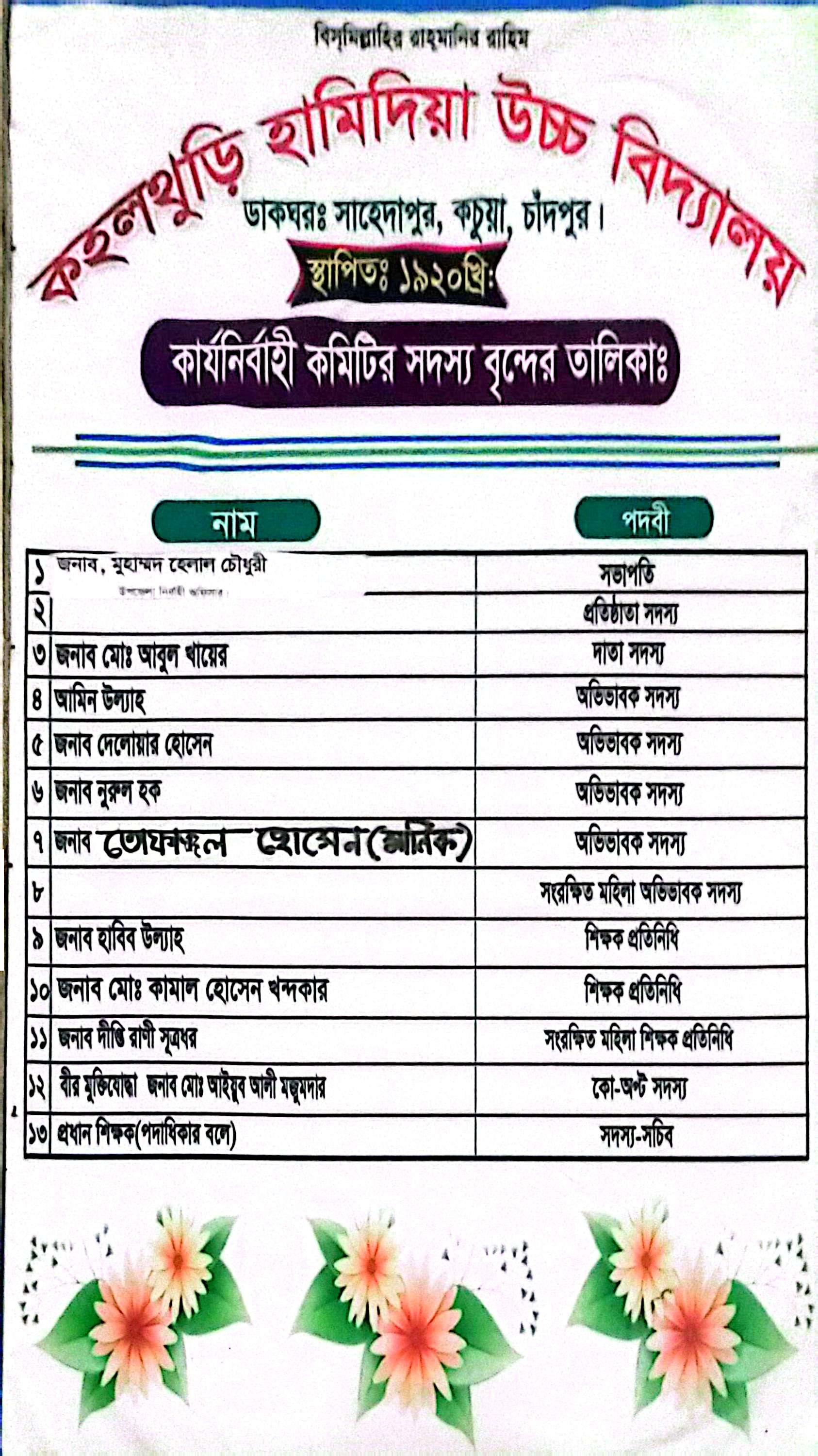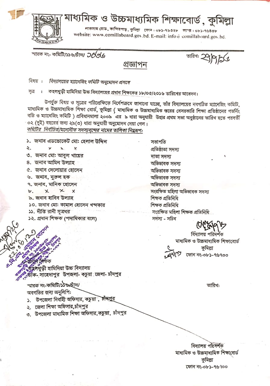 বর্তমান ব্যবস্থাপনা কমিটির তথ্য